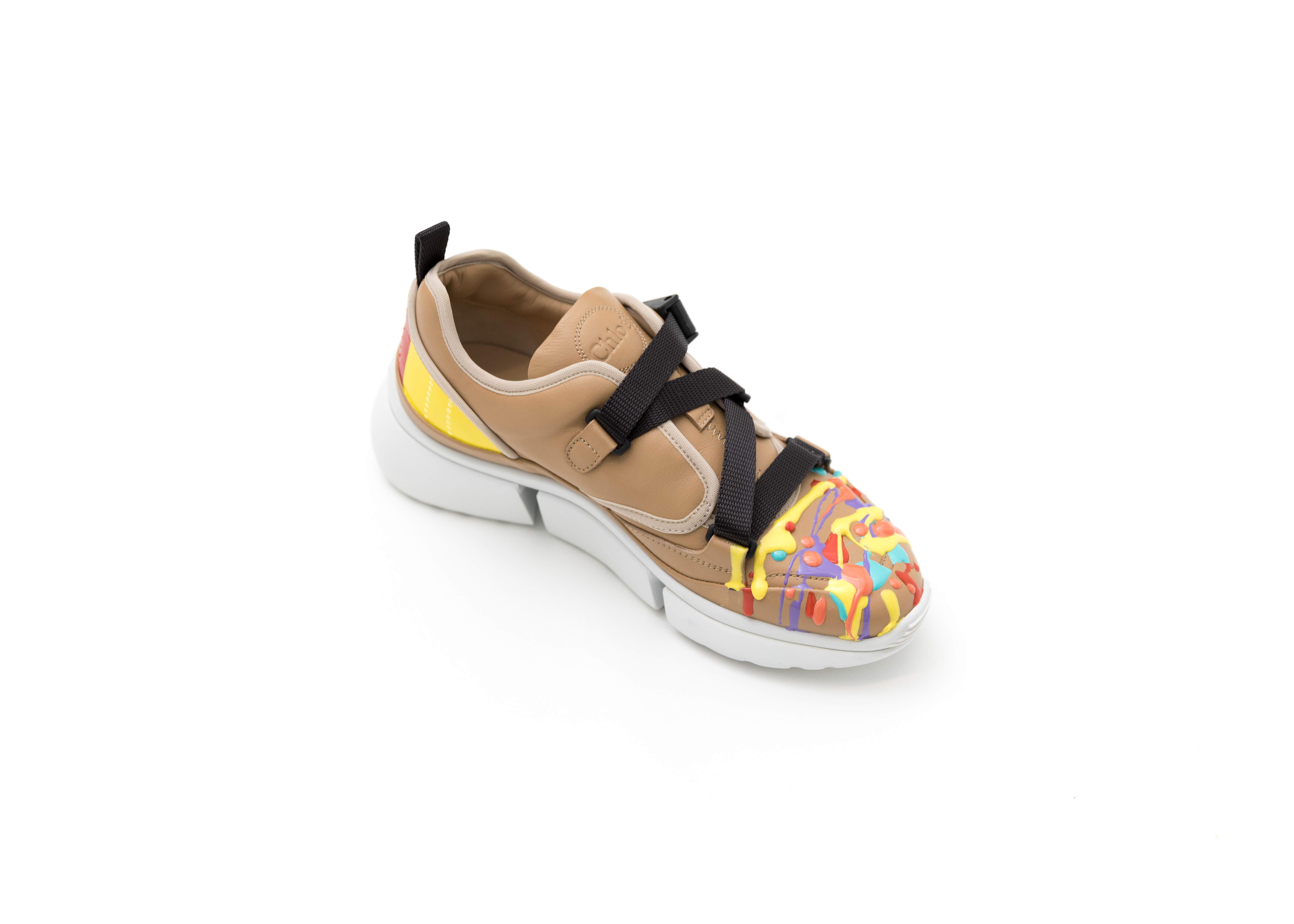I was approached by Chloé to do work on their sneakers utilizing my urethane drip technique and hand painted elements. Handling everything from the initial concept/design, finished product, and packaging